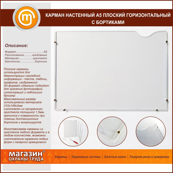 Карман настенный А5 плоский горизонтальный с бортиками в Видном купить