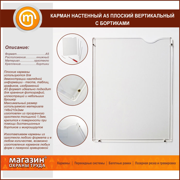 Карман настенный А5 плоский вертикальный с бортиками в Видном купить
