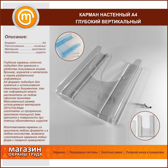 Карман настенный А4 объемный вертикальный в Видном купить