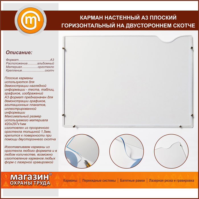 Карман настенный А3 плоский горизонтальный на двустороннем скотче в Видном купить