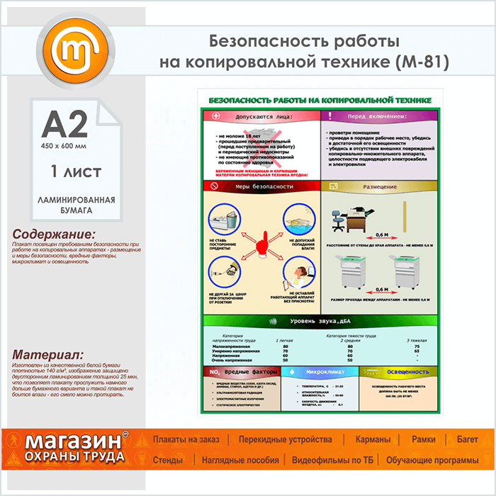 Плакат «Безопасность работы на копировальной технике» (М-81, ламинированная бумага, А2, 1 лист) в Видном купить