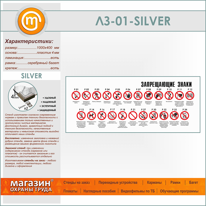 Стенд «Запрещающие знаки» (LZ-01-SILVER) в Видном купить