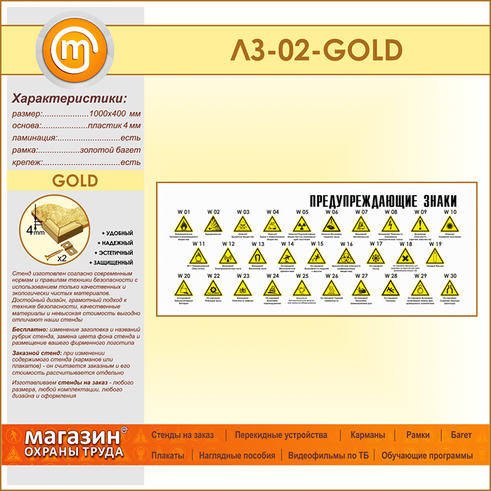 Стенд «Предупреждающие знаки» (LZ-02-GOLD) в Видном купить
