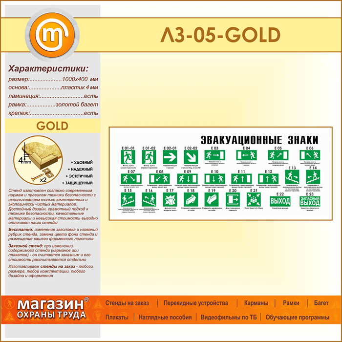 Стенд «Эвакуационные знаки» (LZ-05-GOLD) в Видном купить