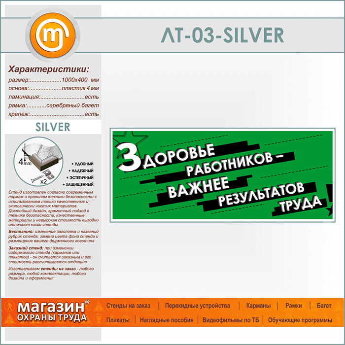 Лозунг «Здоровье работников - важнее результатов труда» (LT-03-SILVER) в Видном купить
