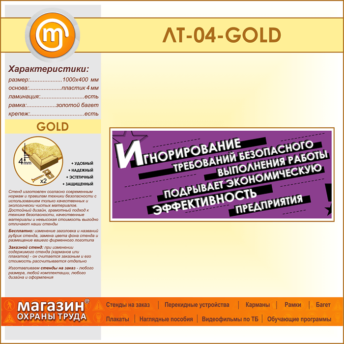 Лозунг «Игнорирование безопасного выполнения работы...» (LT-04-GOLD) в Видном купить