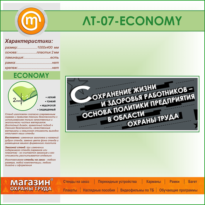 Лозунг «Сохранение жизни и здоровья работников...» (LT-07-ECONOMY) в Видном купить