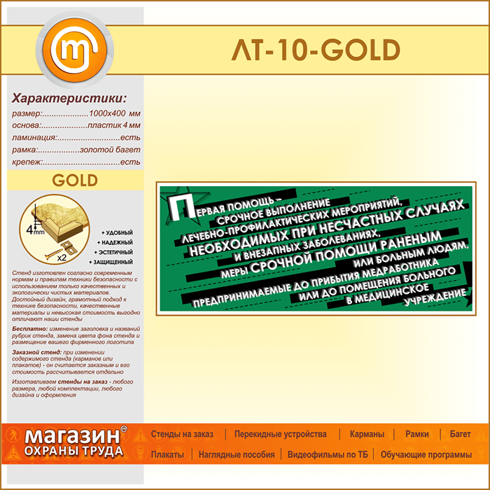 Лозунг «Первая помощь - срочное выполнение...» (LT-10-GOLD) в Видном купить