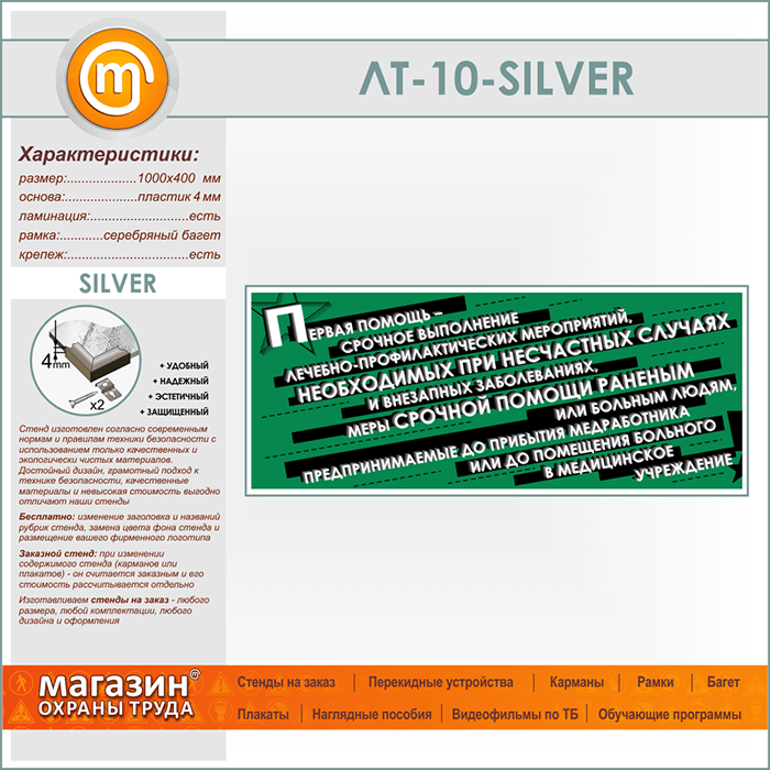 Лозунг «Первая помощь - срочное выполнение...» (LT-10-SILVER) в Видном купить