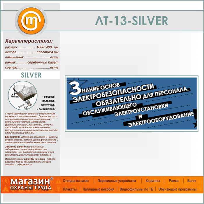 Лозунг «Знание основ электробезопасности обязательно...» (LT-13-SILVER) в Видном купить