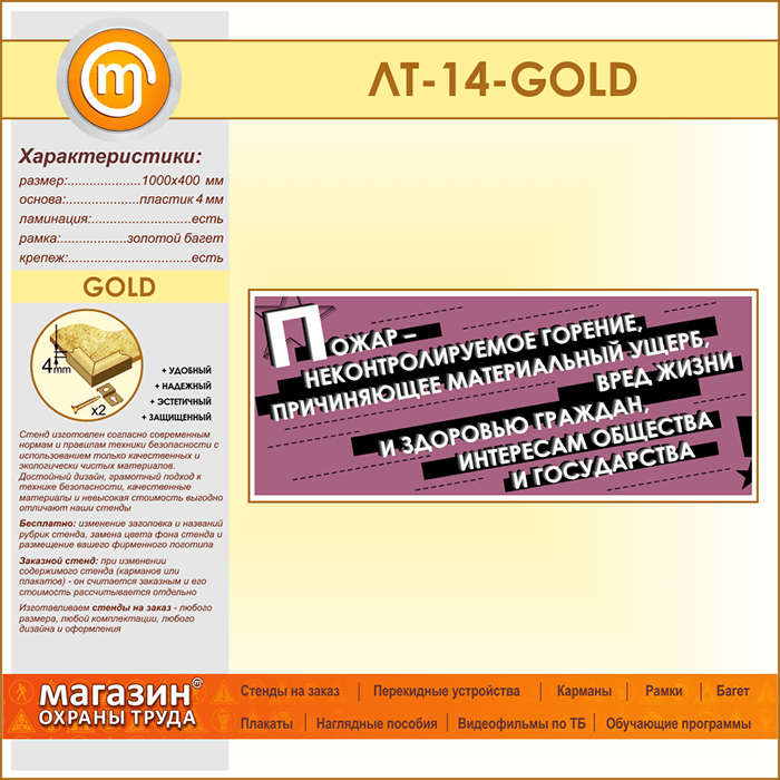 Лозунг «Пожар - неконтроллируемое горение...» (LT-14-GOLD) в Видном купить