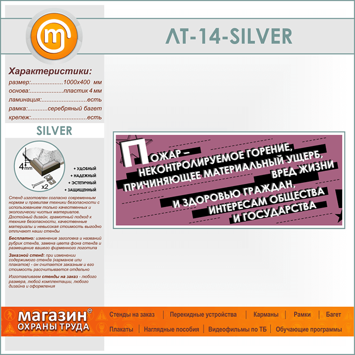 Лозунг «Пожар - неконтроллируемое горение...» (LT-14-SILVER) в Видном купить