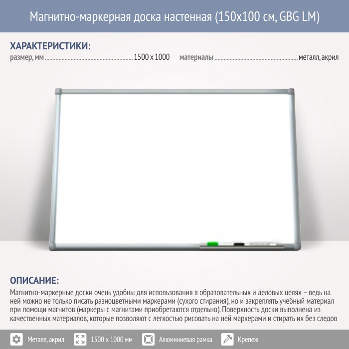 Магнитно-маркерная доска настенная (150x100 см, GBG LM) в Видном купить