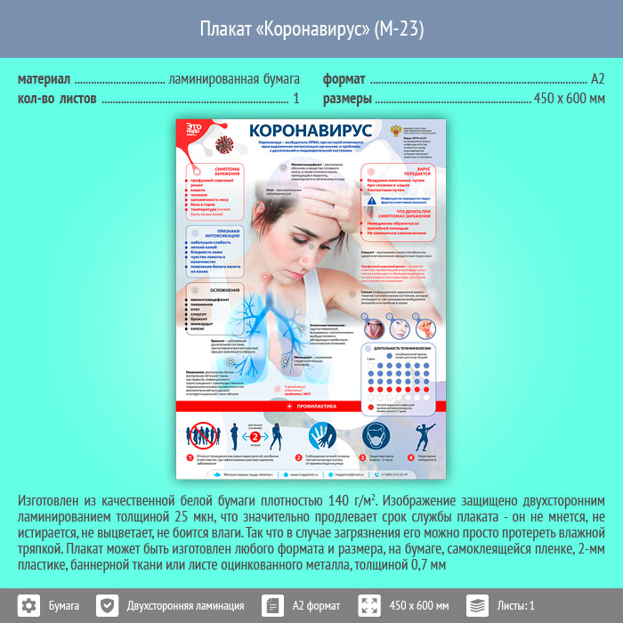 Плакат «Коронавирус» (М-23, ламинированная бумага, А2, 1 лист) в Видном купить
