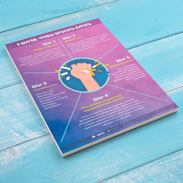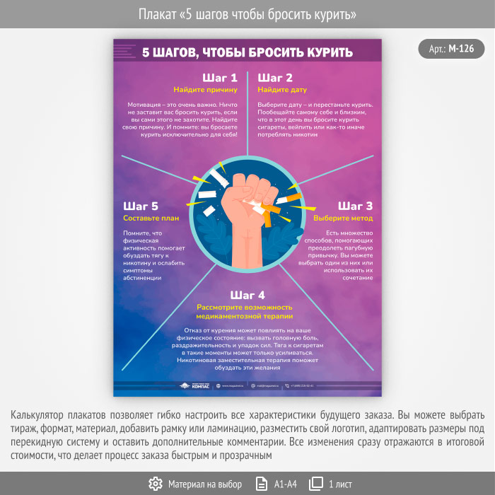 Плакат «5 шагов чтобы бросить курить» (М-126, 1 лист) в Видном купить
