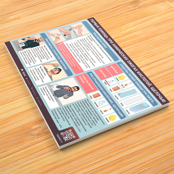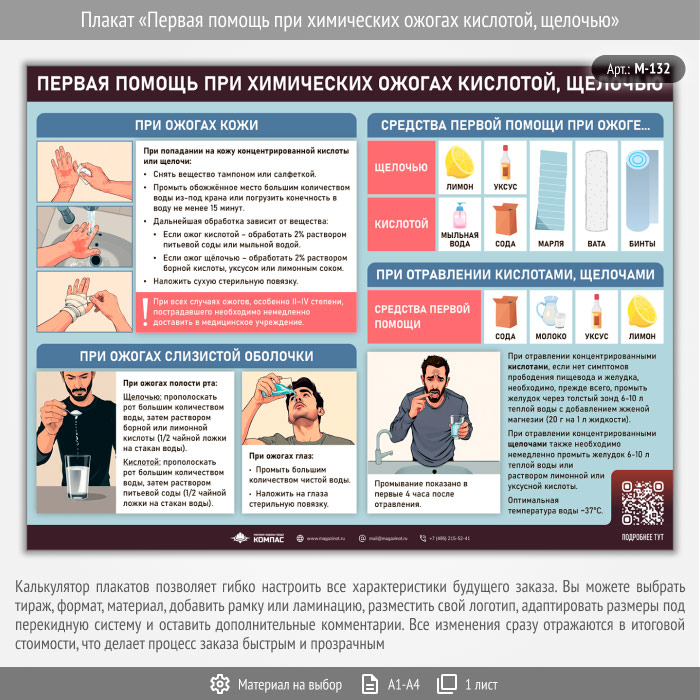 Плакат «Первая помощь при химических ожогах кислотой, щелочью» с QR (М-132, 1 лист) в Видном купить