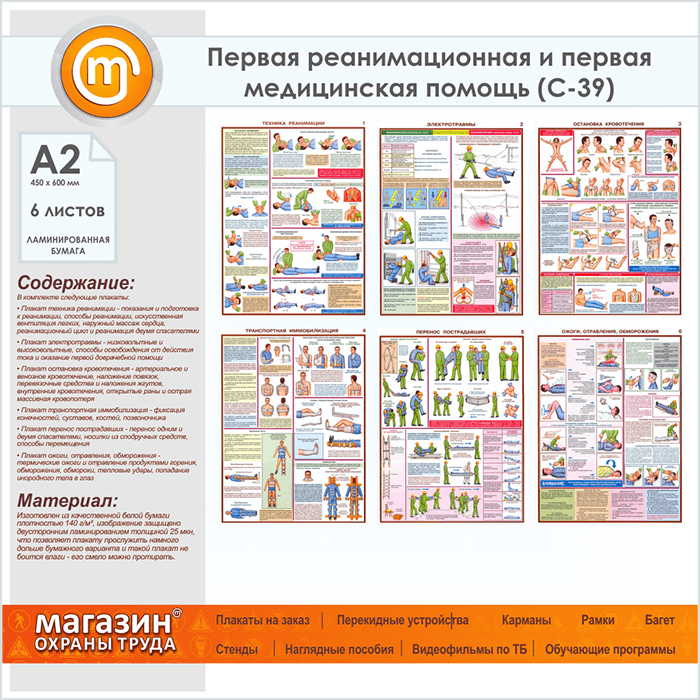 Плакат «Оказание первой помощи пострадавшим» (С-39, ламинированная бумага, А2, 6 листов) в Видном купить