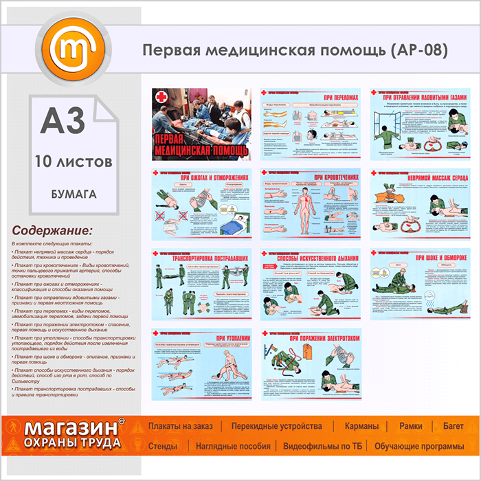 Плакаты «Первая медицинская помощь» (АР-08, бумага, А3, 10 листов) в Видном купить