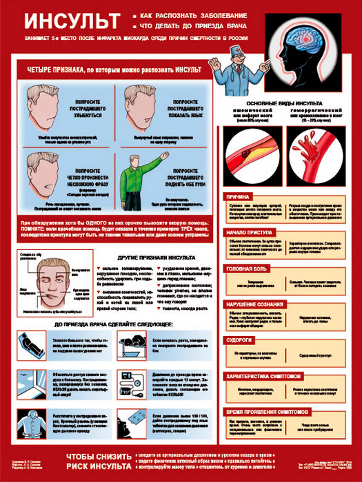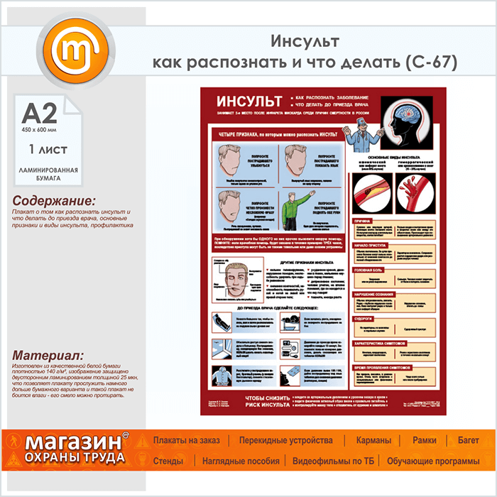 Плакат «Инсульт - как распознать и что делать» (С-67, ламинированная бумага, А2, 1 лист) в Видном купить