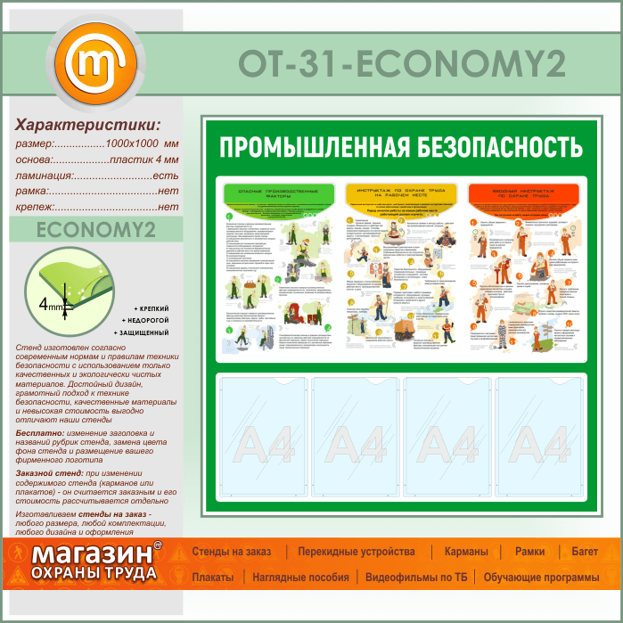 Стенд «Промышленная безопасность» с 4 карманами (OT-31-ECONOMY2) в Видном купить