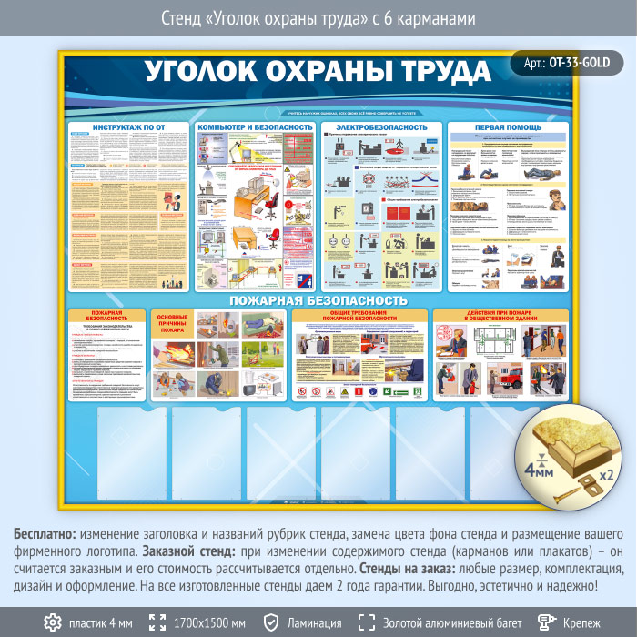 Стенд «Уголок охраны труда» с 6 карманами (OT-33-GOLD) в Видном купить