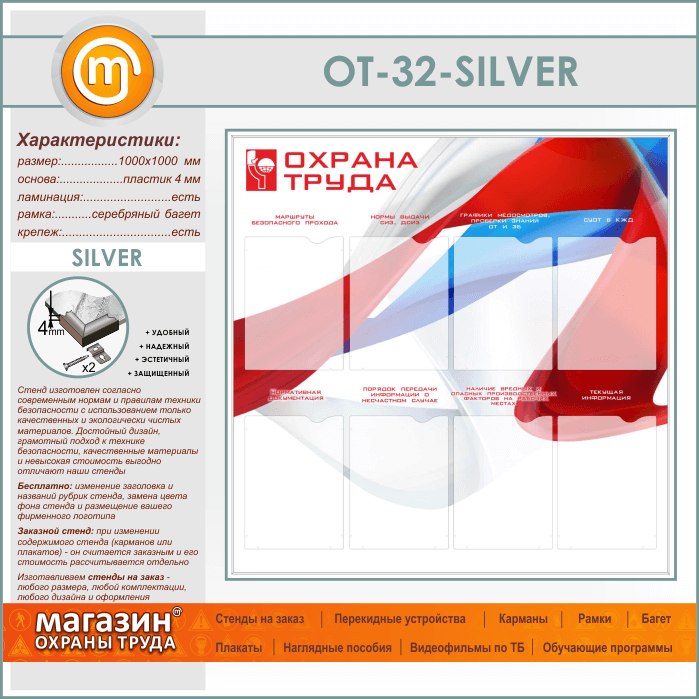 Стенд «Охрана труда» с 8 карманами (OT-32-SILVER) в Видном купить