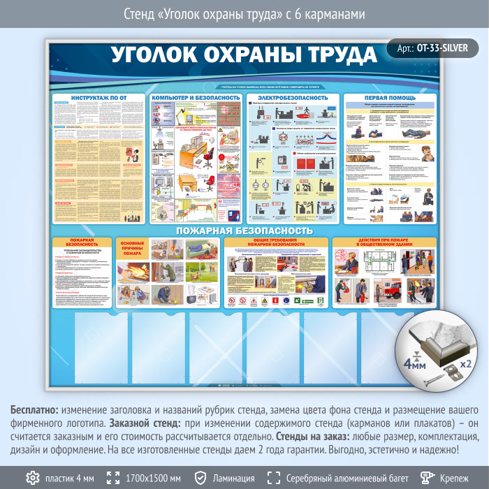 Стенд «Уголок охраны труда» с 6 карманами (OT-33-SILVER) в Видном купить