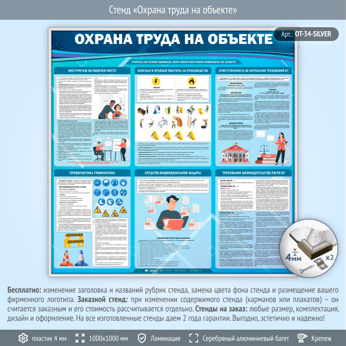 Стенд «Охрана труда на объекте» (OT-34-SILVER) в Видном купить