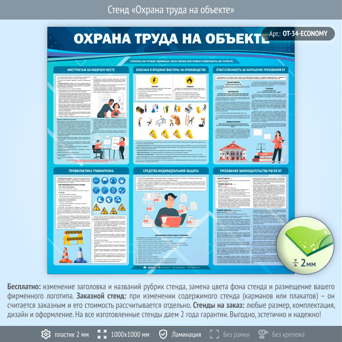 Стенд «Охрана труда на объекте» (OT-34-ECONOMY) в Видном купить
