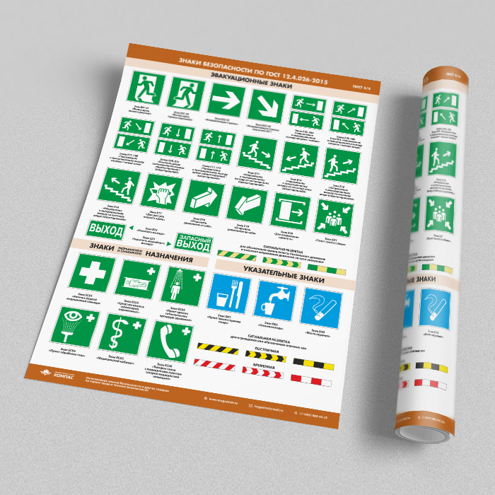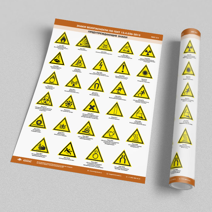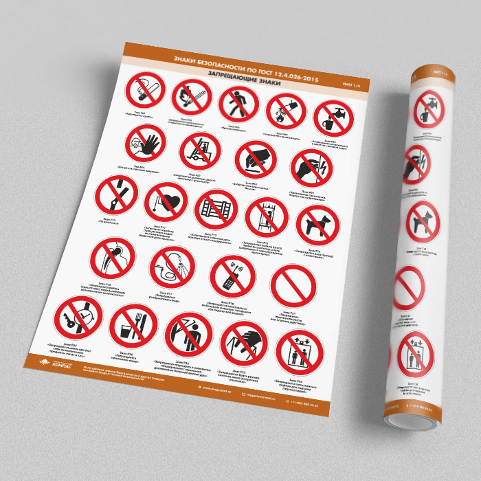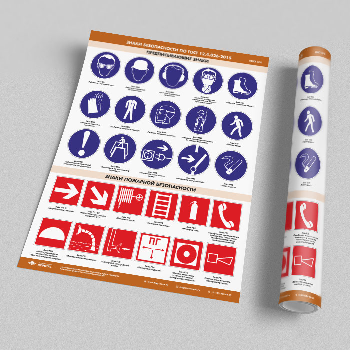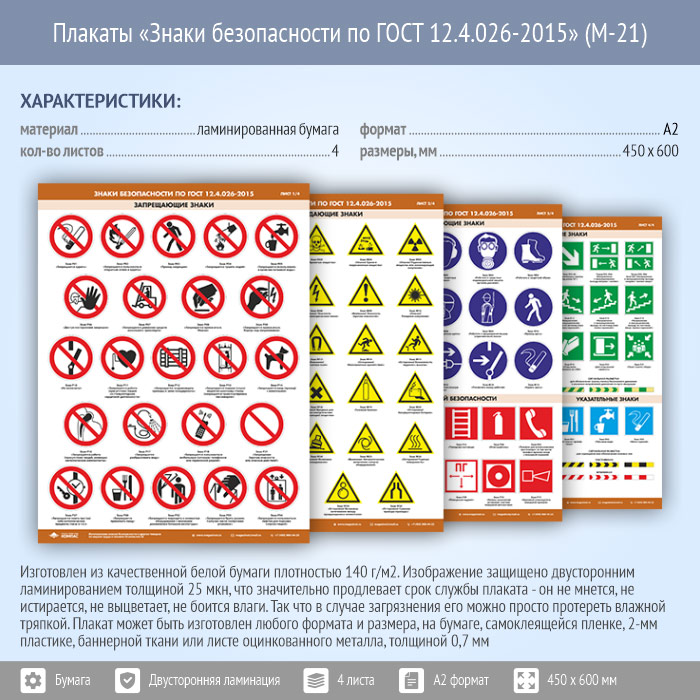Плакаты «Знаки безопасности по ГОСТ 12.4.026-2015» (М-21, ламинированная бумага, А2, 4 листа) в Видном купить