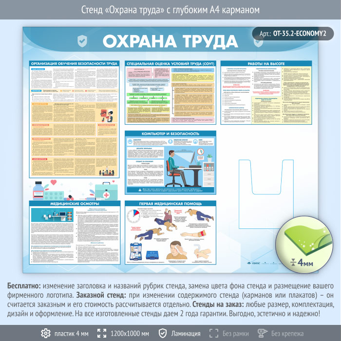 Стенд «Охрана труда» с глубоким А4 карманом (OT-35.2-ECONOMY2) в Видном купить