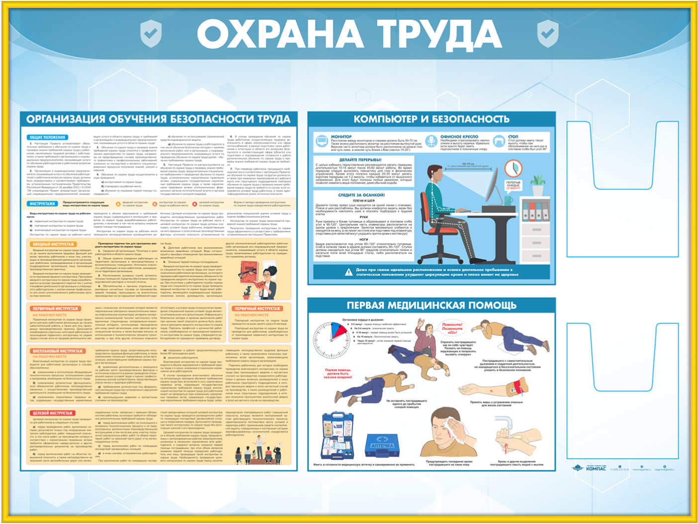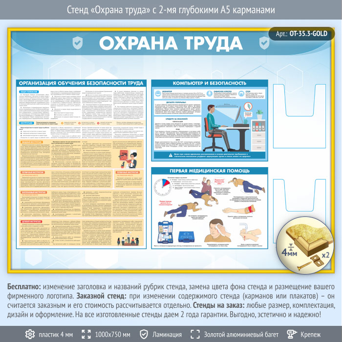Стенд «Охрана труда» с 2-мя глубокими А5 карманами (OT-35.3-GOLD) в Видном купить