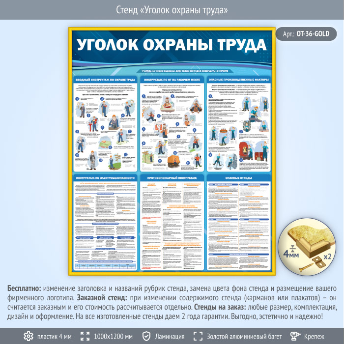 Стенд «Уголок охраны труда» (OT-36-GOLD) в Видном купить