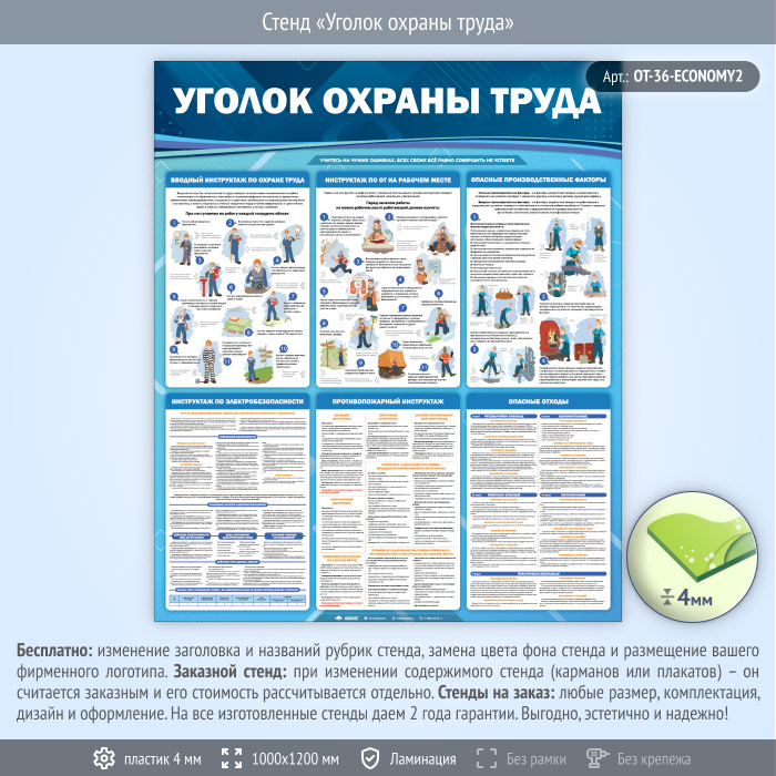 Стенд «Уголок охраны труда» (OT-36-ECONOMY2) в Видном купить