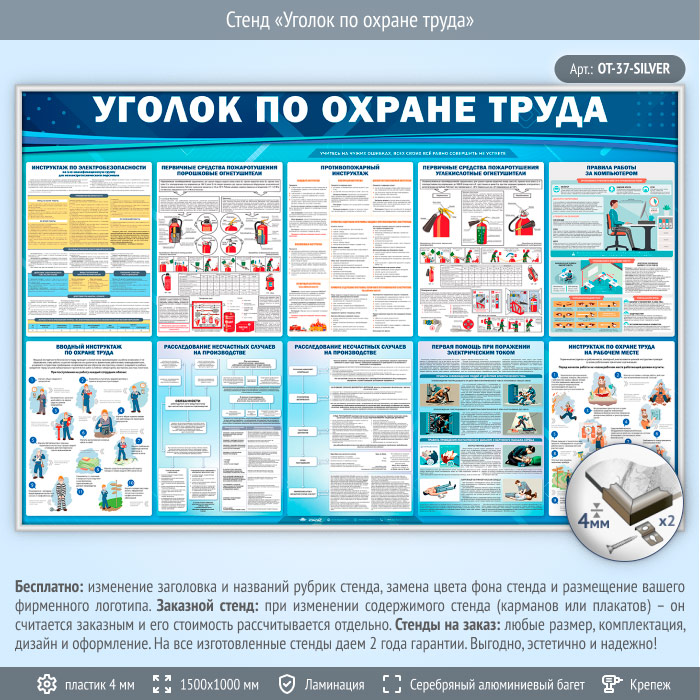 Стенд «Уголок по охране труда» (OT-37-SILVER) в Видном купить
