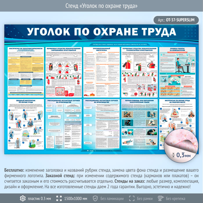 Стенд «Уголок по охране труда» (OT-37-SUPERSLIM) в Видном купить
