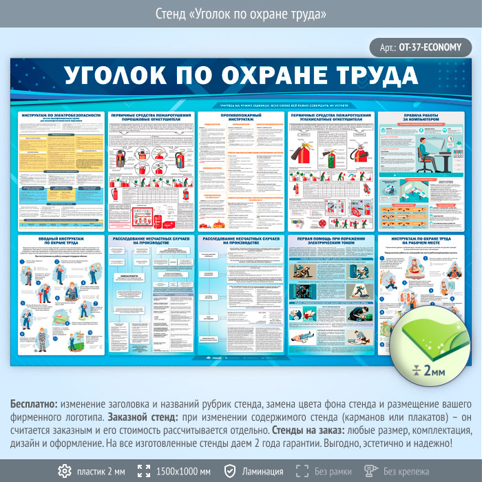 Стенд «Уголок по охране труда» (OT-37-ECONOMY) в Видном купить