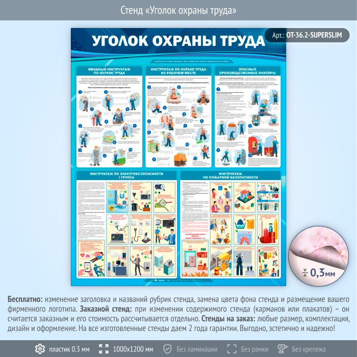 Стенд «Уголок охраны труда» (OT-36.2-SUPERSLIM) в Видном купить