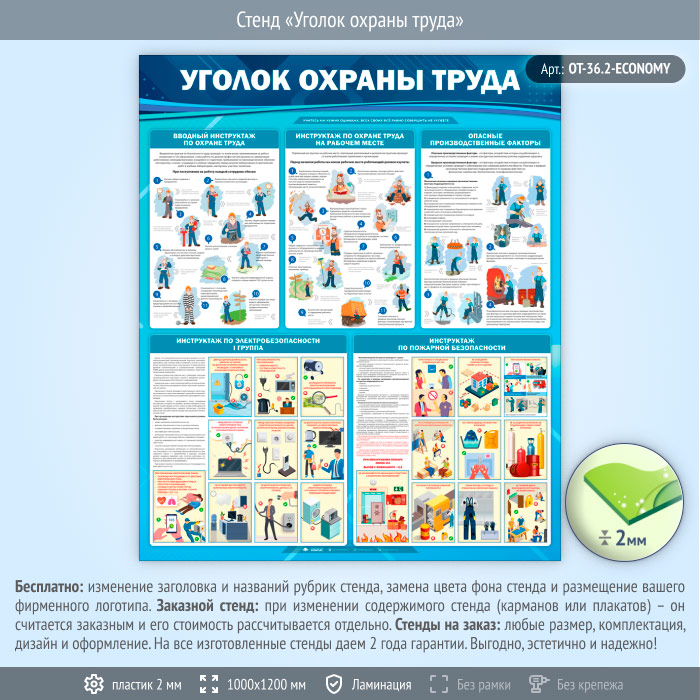 Стенд «Уголок охраны труда» (OT-36.2-ECONOMY) в Видном купить
