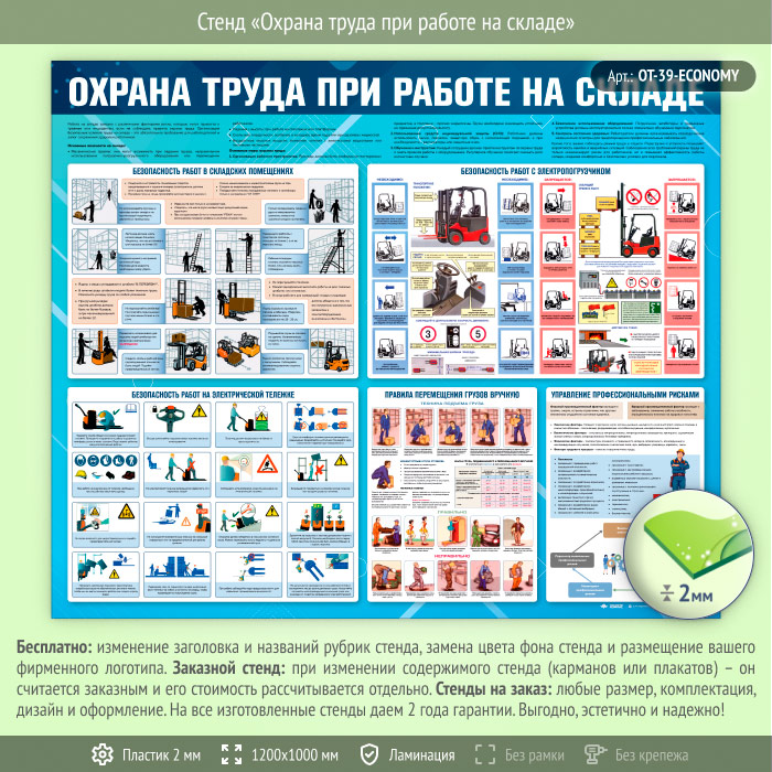 Стенд «Охрана труда при работе на складе» (OT-39-ECONOMY) в Видном купить