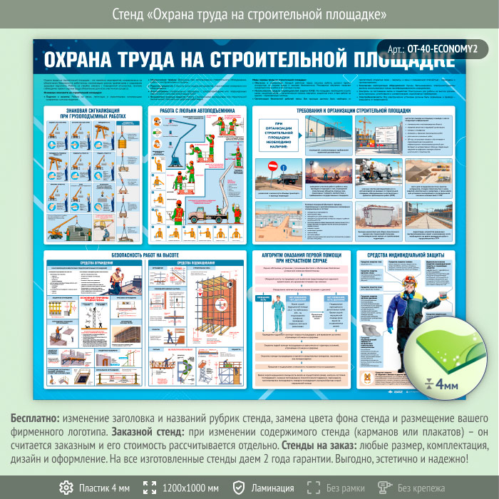 Стенд «Охрана труда на строительной площадке» (OT-40-ECONOMY2) в Видном купить