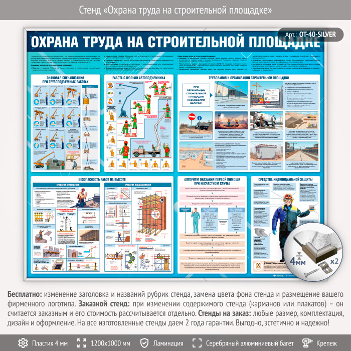 Стенд «Охрана труда на строительной площадке» (OT-40-SILVER) в Видном купить