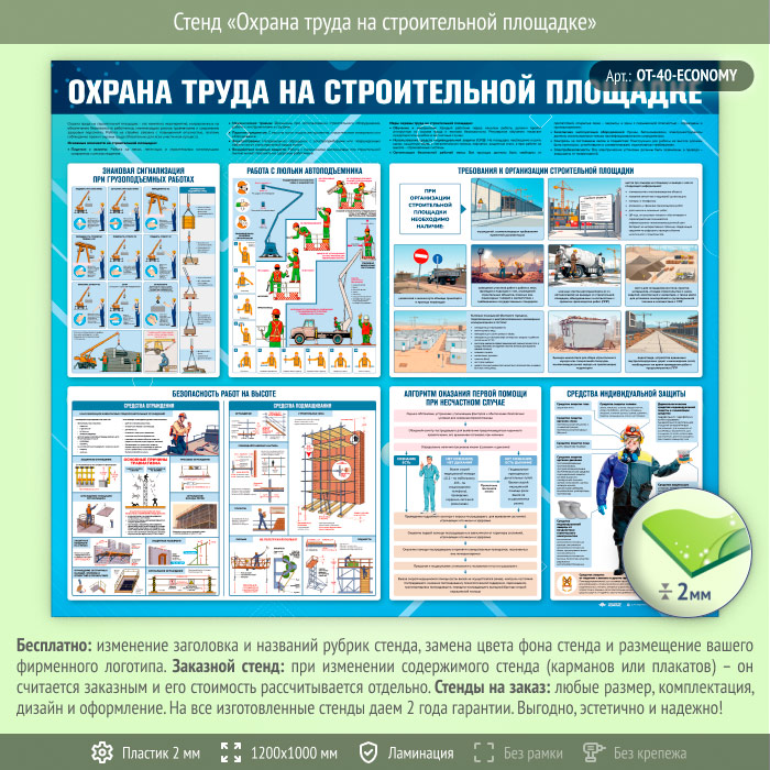 Стенд «Охрана труда на строительной площадке» (OT-40-ECONOMY) в Видном купить