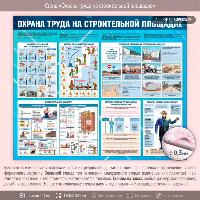 Стенд «Охрана труда на строительной площадке» (OT-40-SUPERSLIM) в Видном купить