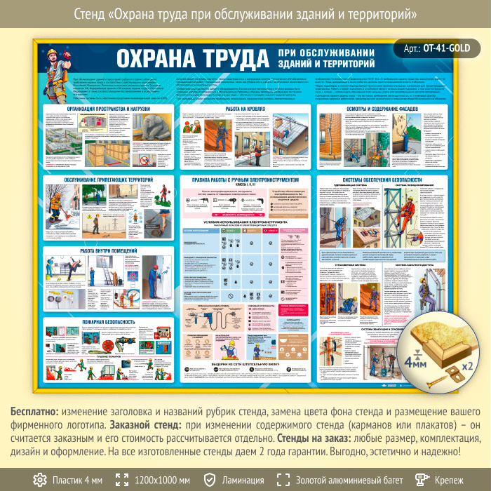 Стенд «Охрана труда при обслуживании зданий и территорий» (OT-41-GOLD) в Видном купить