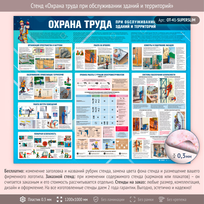 Стенд «Охрана труда при обслуживании зданий и территорий» (OT-41-SUPERSLIM) в Видном купить