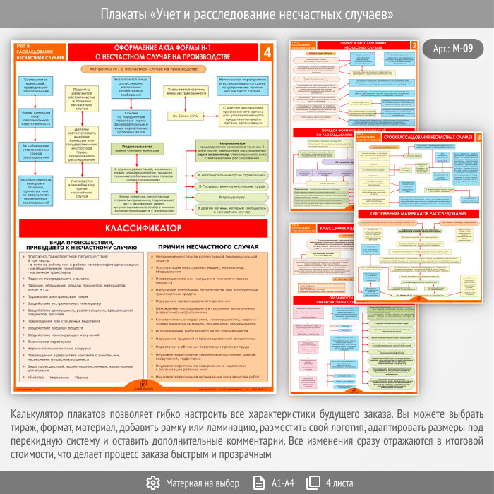 Плакаты «Учет и расследование несчастных случаев» (М-09, 4 листа) в Видном купить