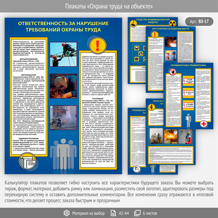 Плакаты «Охрана труда на объекте» (ВЗ-17, 6 листов) в Видном купить