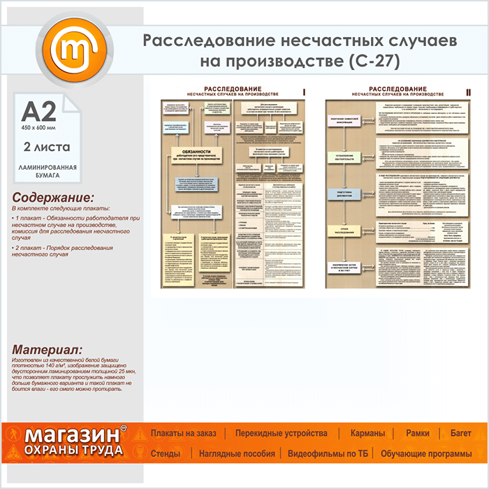 Плакаты «Расследование несчастных случаев на производстве» (С-27, ламинированная бумага, А2, 2 листа) в Видном купить