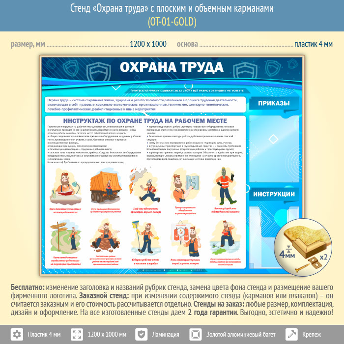 Стенд «Охрана труда» с плоским и объемным карманами (OT-01-GOLD) в Видном купить